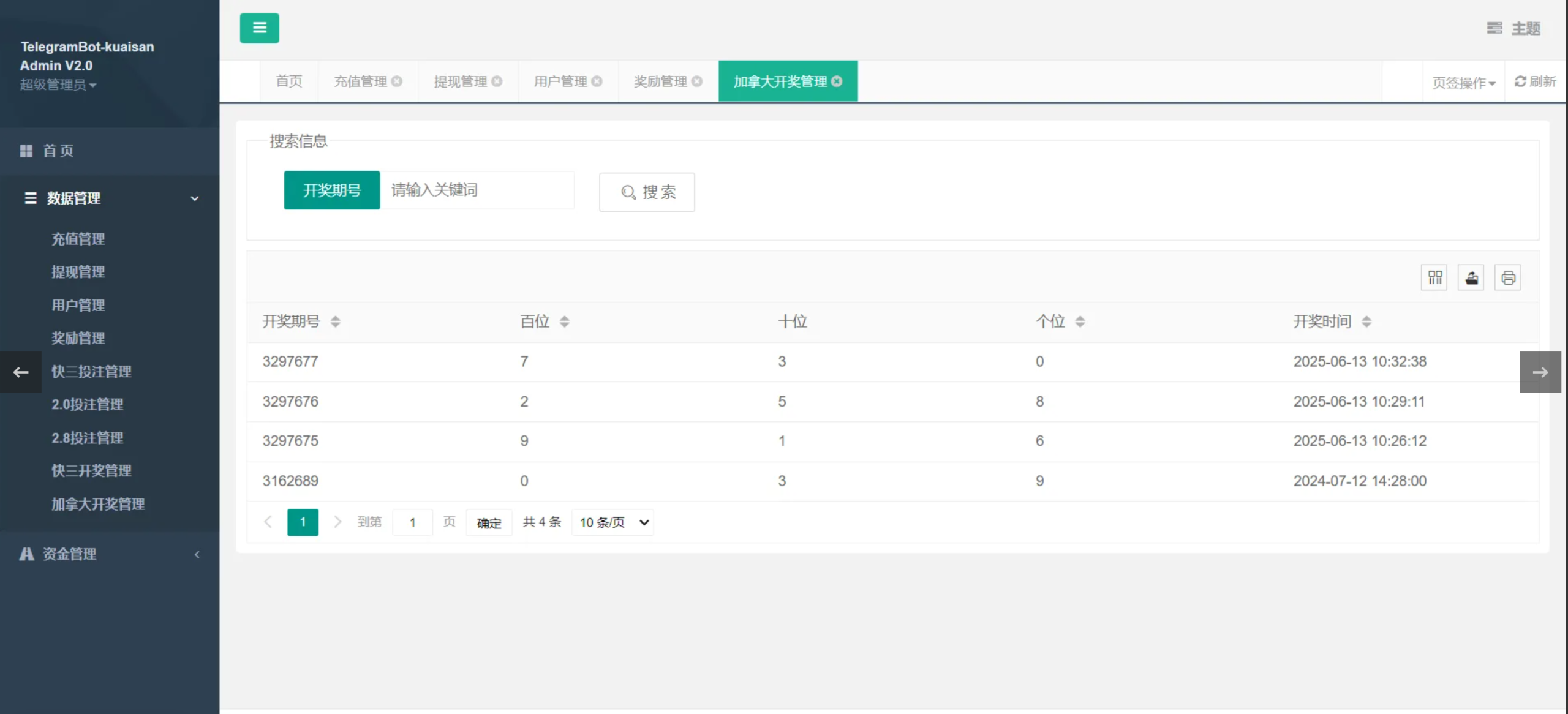 TG加拿大28机器人源码/Telegram机器人源码/独立管理后台/带视频搭建教程 TG加拿大28机器人源码/Telegram机器人源码/独立管理后台/带视频搭建教程 问题挺多的,一点点修复是能正常跑起来了 上下分功能这些没有测试,只测试了下注,开奖,结算等 修复不开奖问题 修复封盘失效 另外管理后台还有点问题,但是感觉这个后台也没什么卵用。 其他的自行研究吧 隐藏内容 本内容需权限查看 购买查看权限 普通用户: 15U币VIP会员: 15U币永久会员: 免费 已有24人解锁查看