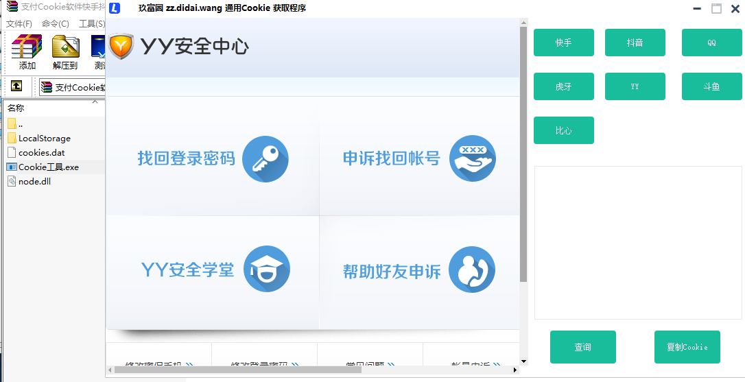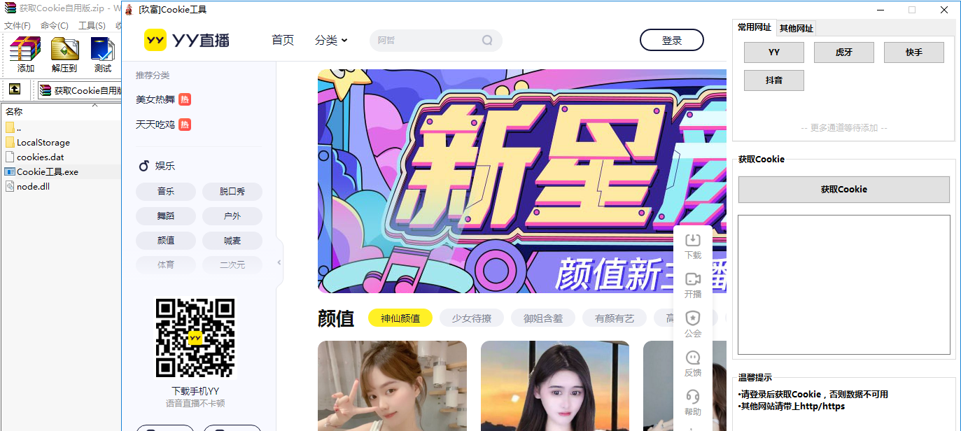 CK获取工具可以一键获取到yy、抖音、快手、虎牙、京东、淘宝等,可以自定义输入网址 进行获取,