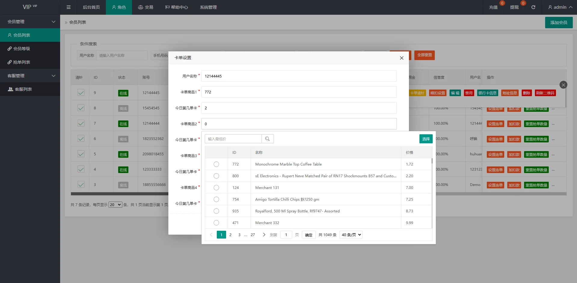 系统前端UI二开,新增单独卡单设置,卡单清针,连单清针功能