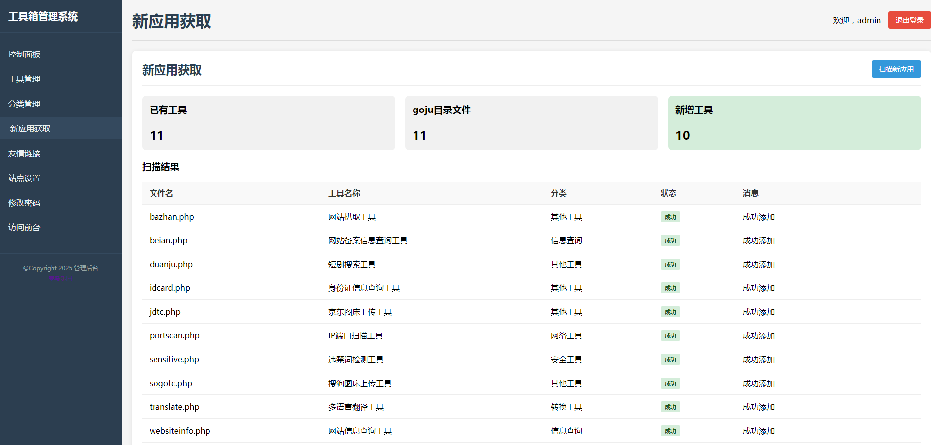 亲测–菜鸟工具网源码v1.0.1版本 直接扔服务器 修改config/config.php文件里面的数据库 后台账号admin 密码admin123 本工具是AI写的 所以工具均是第三方接口直接写的。 需要加工具直接自己找接口写好扔到goju目录 后台自动读取 程序会持续用AI进行更新和优化看看最后是啥样的! 隐藏内容 本内容需权限查看 购买查看权限 普通用户: 15U币VIP会员: 15U币永久会员: 免费 已有37人解锁查看 声明:本站所有文章,如无特殊说明或标注,均为本站原创发布。任何个人或组织,在未征得本站同意时,禁止复制、盗用、采集、发布本站内容到任何网站、书籍等各类媒体平台。如若本站内容侵犯了原著者的合法权益,可联系我们进行处理。
