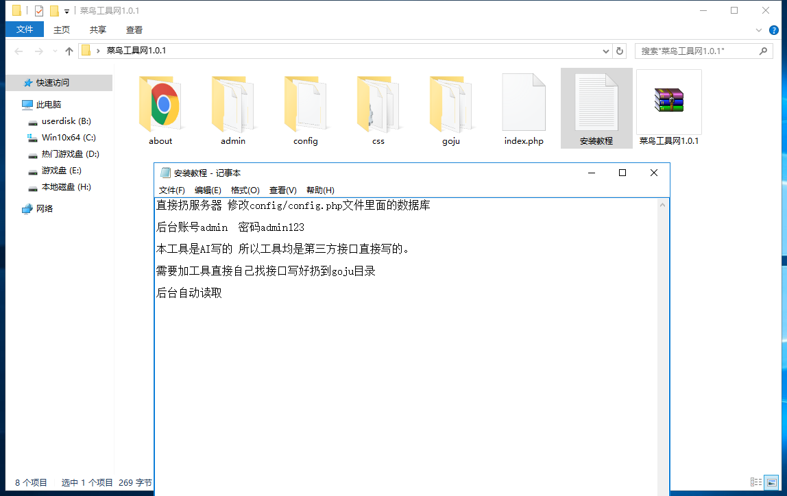 亲测–菜鸟工具网源码v1.0.1版本 直接扔服务器 修改config/config.php文件里面的数据库 后台账号admin 密码admin123 本工具是AI写的 所以工具均是第三方接口直接写的。 需要加工具直接自己找接口写好扔到goju目录 后台自动读取 程序会持续用AI进行更新和优化看看最后是啥样的! 隐藏内容 本内容需权限查看 购买查看权限 普通用户: 15U币VIP会员: 15U币永久会员: 免费 已有37人解锁查看