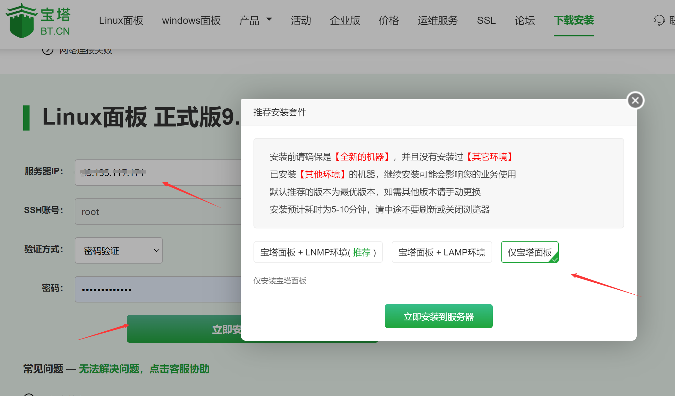 在线安装宝塔面板:https://www.bt.cn/new/download.html